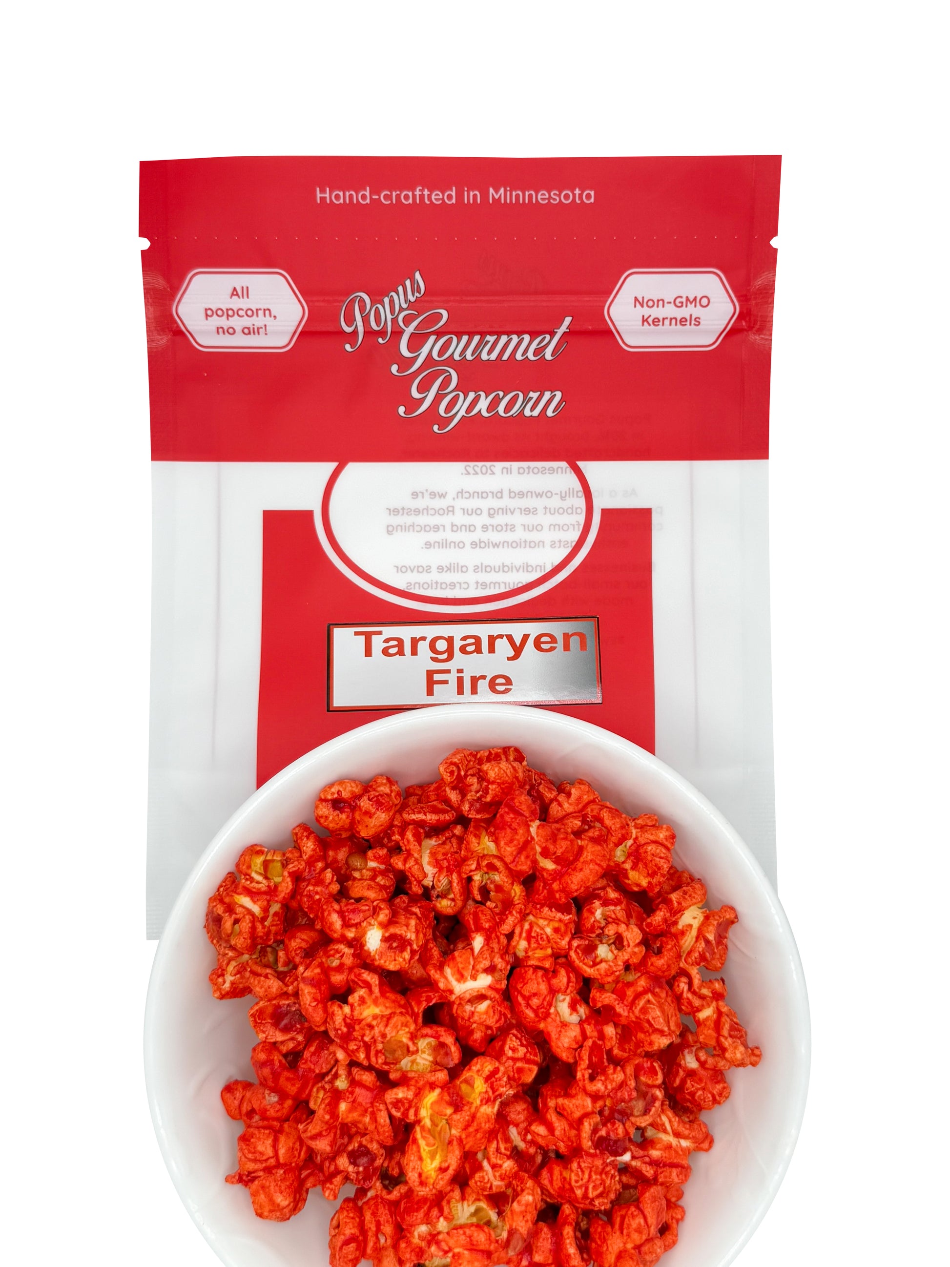 Not for the faint of heart! This blazing hot popcorn delivers an intense kick of fiery spice, balanced by a bold, savory crunch. With its deep red color and lingering heat, Targaryen Fire lives up to its name—bringing the ultimate spicy challenge in every bite. Can you handle the fire?